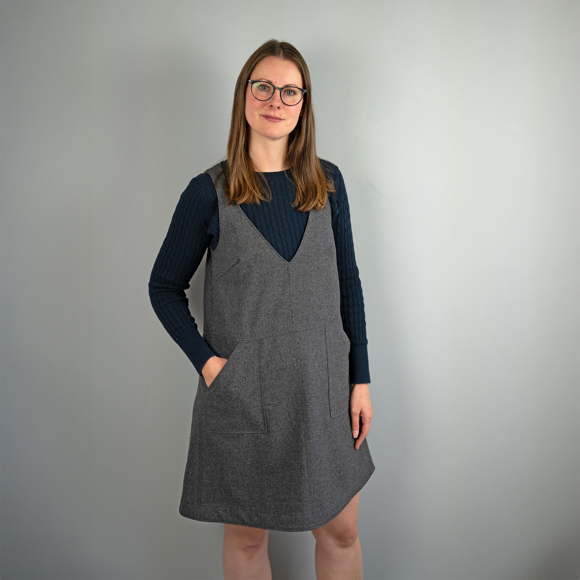 Das Herbstkleid basiert auf dem beliebten Schnittmuster Basic Dress. Wenn du diesen Schnitt bereits an deine Körpermaße angepasst hast, kannst du dein Herbstkleid selbst konstruieren und Details wie Taschengröße und Ausschnitttiefe selbst bestimmen!